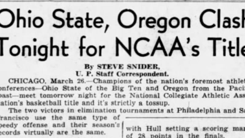 "Kentucky piled up a 19-7 lead in the first five minutes of play, during which time the Bearcats were held to a single field goal," reported the AP. "At intermission, the Wildcats were in command, 38-20. Cincinnati could connect from the field only twice in the first ten minutes of play and just five times in the entire first half, but the Bearcats made good on ten of fourteen free throws."