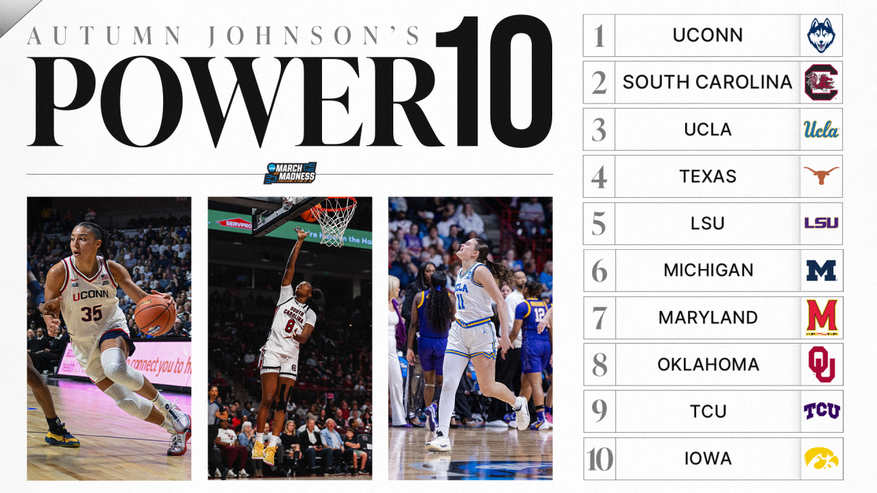 UConn, Texas continue to dominate in latest Power 10