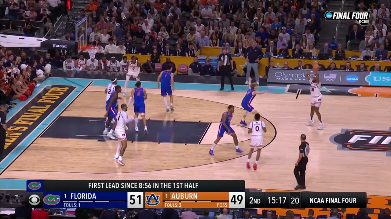 After 12 first half points from All-American big man Johni Broome, Florida held him to just three second-half points, stifling the Tiger offense. Auburn went just 8-24 from the field in the final 20 minutes with 12 turnovers and were out-rebounded 23-13. Bruce Pearl's squad had just two TOs in the first 20 minutes of play.