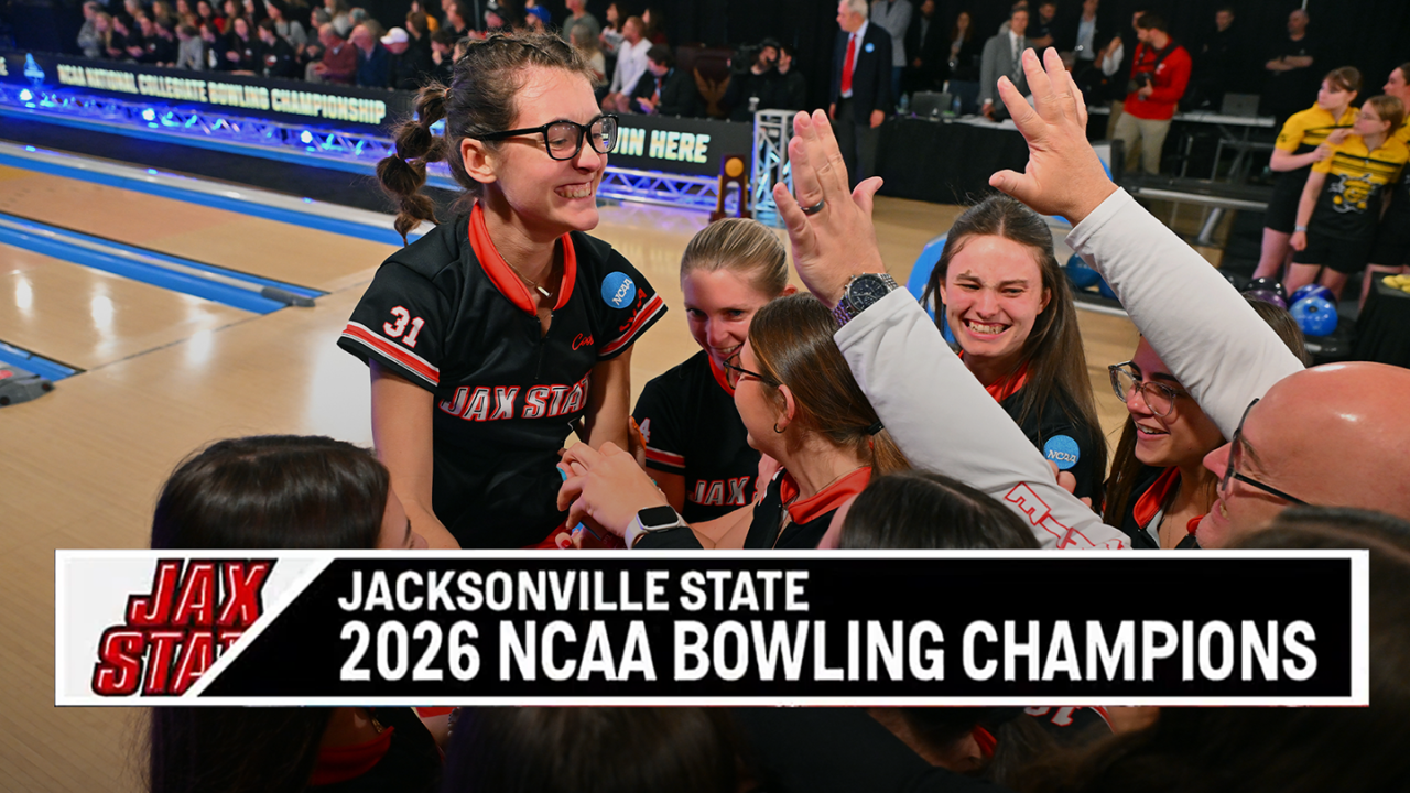 Full 10th frame, celebration from Jacksonville State's 2026 bowling title