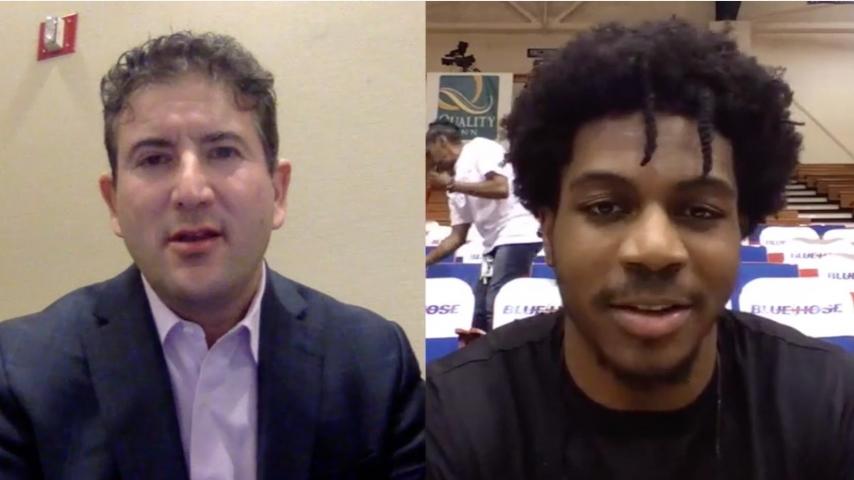 Campbell's Chris Clemons speaks with Andy Katz after becoming 9th DI player to reach 3,000 points