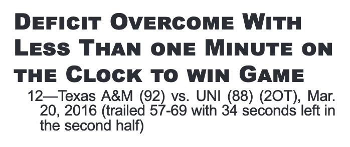 Speaking of efficiency, the basket that arguably turned Texas A&M's comeback hopes from a fever dream for Northern Iowa to a burgeoning reality was the Aggies' third made basket during their improbable run.