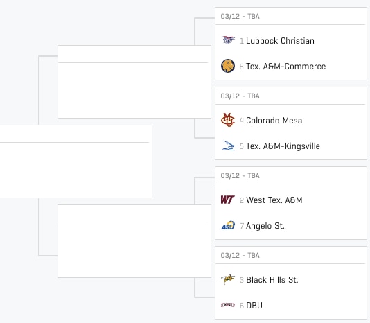 Here’s another very tricky part of the bracket. Texas A&M-Commerce is a pretty solid No. 8 seed... except the Lions play one of the best teams in DII men’s basketball to open the tournament. Lubbock Christian has been fantastic all season and Parker Hicks is a game-changing player that can turn a tourney game on his own. So is Black Hills State’s Joel Scott, and the Yellow Jackets draw a DBU team that has lost three in a row entering the tournament.