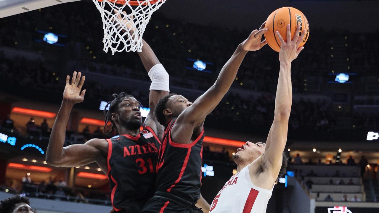 After a back-and-forth fight, No. 5 San Diego State outlasted a late rally from No. 1 Alabama,. With the win, the Aztecs reached their first Elite Eight in program history and the first Elite Eight of any Mountain West team.