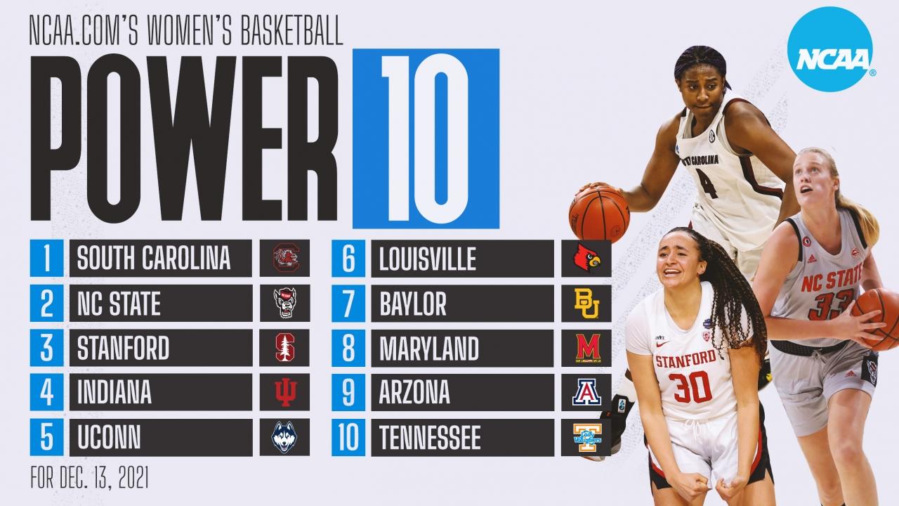 1. South Carolina (1) β So far, the Gamecocks have been untouchable with a 10-0 record. Now taking down Maryland, which makes them 4-0 over top-10 foes, I do not see South Carolina losing a game the rest of the way. This team is known for its dominant paint production with Aliyah Boston headlining its deep front court, but its backcourt is just as good. In the Jimmy V Classic matchup, the dynamic duo of Boston and Zia Cooke took over and both hit the 1000th point milestone on Dec. 12.