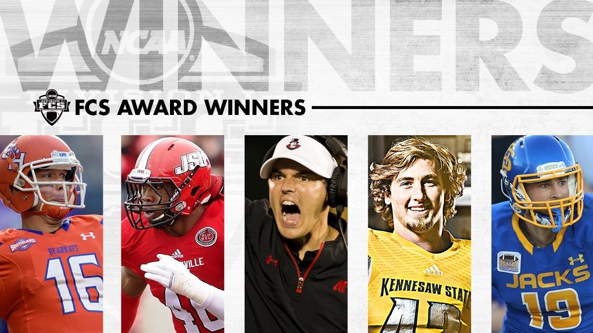 The final three individual awards handed out at Friday's banquet all were announced ahead of time. Austin Peay coach Will Healy won the Eddie Robinson Award for national coach of the year, Kennesaw State linebacker Bryson Armstrong earned the Jerry Rice Award for top freshman and South Dakota State wide receiver Jake Wieneke took home the Doris Robinson Scholar-Athlete Award.