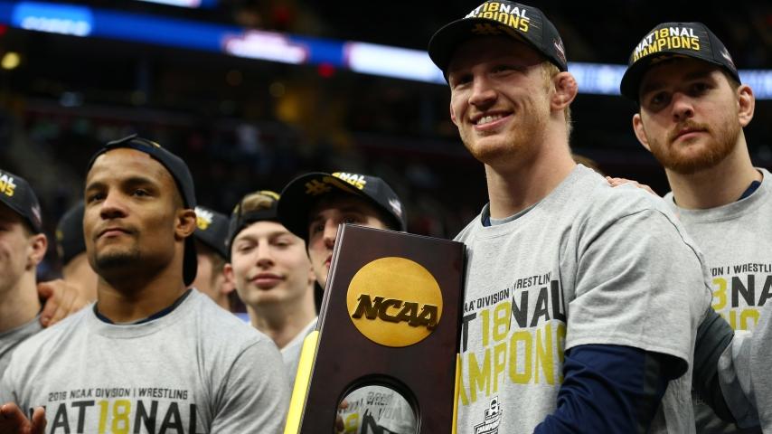 With the NCAA wrestling national team title on the line, Penn Stateâs junior Bo Nickal found himself in a tight position early in the 184-pound championship against second-seeded Myles Martin of Ohio State. Martin earned a takedown, generating a roar of approval from the hometown crowd, but Nickal scrambled his way out of the situation, rolled Martin to his back, notched the pin and sealed the championship for the Nittany Lions. The win marked his second consecutive individual national title and the third consecutive team title in four years for Penn State. Zain Retherford, Jason Nolf and Vincenzo Joseph also won individual titles in 2018.