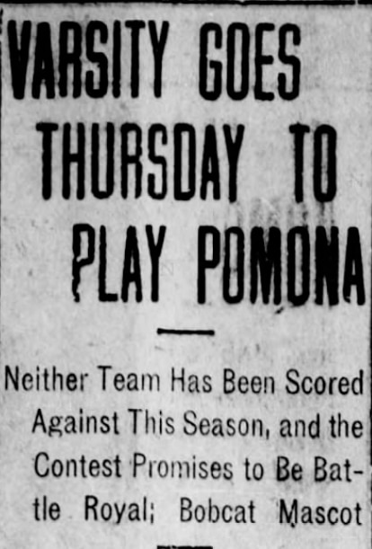 The first newspaper reference we could find of the bobcat mascot was in the Arizona Daily Star on Oct. 19, 1915. Prior to Arizona's trip to play Pomona (Calif.) College, the Arizona Daily Star reported, "On the trip to Pomona the Varsity will take the new mascot, a genuine wildcat, purchased by the Freshman class team."