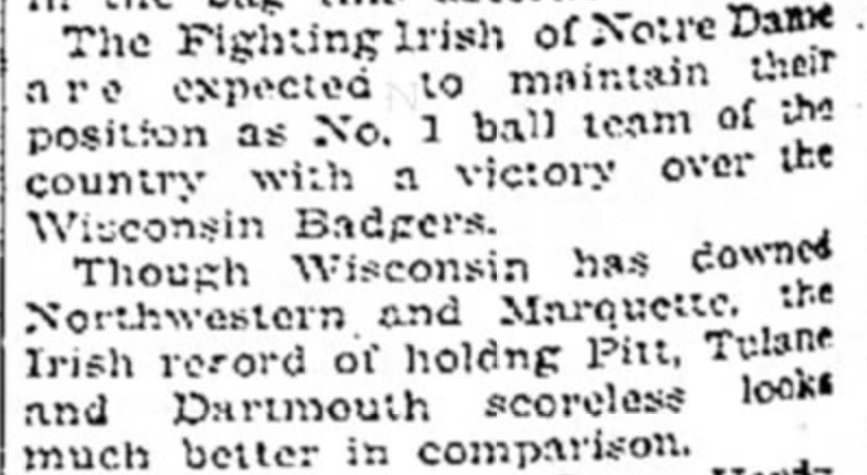 Using the newspapers.com database, the oldest reference to "Wisconsin Badgers," in a college athletics sense, that krikya369.com found was published on Aug. 15, 1896 in The Centralia Enterprise and Tribune: "The Fighting Irish of Notre Dame are expected to maintain their position as No. 1 ball team of the country with a victory over the Wisconsin Badgers." A screenshot from that newspaper story is shown below.