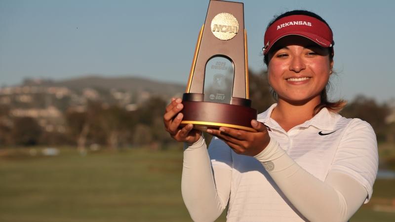 DI Women's College Golf - Home DI Women's Golf Northwestern wins 2025 NCAA DI women's golf championship Championship historyhighlights Championship highlights DI Women's Golf 2025 - Northwestern 3, Stanford 2 DI Women's Golf 2024 - Stanford 3, UCLA 2 DI Women's Golf 2023 - Wake Forest 3, Southern California 1 DI Women's Golf 2022 - Stanford 3, Oregon 2 DI Women's Golf 2021 - Ole Miss 4, Oklahoma State 1 DI Women's Golf 2019 - Duke 3, Wake Forest 2 DI Women's Golf 2018 - Arizona 3, Alabama 2 Individual titles DI Women's Golf Arkansas' Maria Jose Marin wins 2025 title DI Women's Golf Texas A&M's Adela Cernousek wins 2024 title DI Women's Golf Stanford's Rose Zhang wins second-straight title in 2023 DI Women's Golf Stanford's Rose Zhang wins 2022 title DI Women's Golf Stanford's Rachel Heck wins 2021 title DI Women's Golf Arkansas' Maria Fassi wins 2019 title DI Women's Golf Wake Forest's Jennifer Kupcho wins 2018 title Division I Women's Golf Championship May 22-27, 2026 Omni La Costa Resort & Spa | Carlsbad, CA DI Women's Golf NCAA womenβs golf individual and team champions from 1982 to today Championship Recaps πΌ Northwestern wins 2025 π² Stanford wins 2024 π© Wake Forest wins 2023 π² Stanford wins 2023 π¦ Ole Miss wins 2021 DI Women's Golf Highlights from the college careers of the USA women's golf roster at the 2024 Olympics Follow Women's Golf