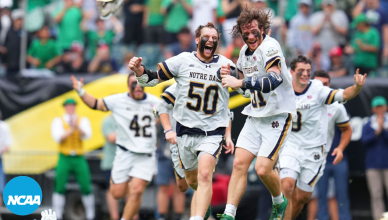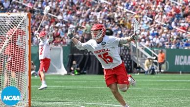 College lacrosse: Men's news, scores, rankings DI men's lacrosse Cornell holds off Maryland to win first men's lacrosse title since 1977 Final BracketChampionship history Thrilling endings DI Men's Lacrosse Full OT: Syracuse vs. Harvard in 2025 tournament DI Men's Lacrosse Full 2OT: Virginia vs. Johns Hopkins in 2024 tournament DI Men's Lacrosse Full OT: Duke vs. Penn State in 2023 tournament DI Men's Lacrosse Full OT: Michigan vs. Cornell in 2023 tournament DI Men's Lacrosse Full OT: North Carolina vs. Rutgers in 2021 tournament DI Men's Lacrosse Full OT: Duke vs. Loyola in 2021 tournament DI Men's Lacrosse Watch the OT winner to send Maryland to the 2021 semifinals individual highlights DI Men's Lacrosse CJ Kirst ties single season goals record in 2025 title game DI Men's Lacrosse Kavanagh brothers' highlights in 2024 championship DI Men's Lacrosse Pat Spencer was a record breaker before the NBA DI Men's Lacrosse Notre Dame WR Jordan Faison lacrosse highlights championship highlights DI Men's Lacrosse 2025 - Cornell 13, Maryland 10 DI Men's Lacrosse 2024 - Notre Dame 15, Maryland 5 DI Men's Lacrosse 2023 - Notre Dame 13, Duke 9 DI Men's Lacrosse 2022 - Maryland 9, Cornell 7 DI Men's Lacrosse 2021 - Virginia 17, Maryland 16 DI Men's Lacrosse 2019 - Virginia 13, Yale 9 DI Men's Lacrosse 2018 - Yale 13, Duke 11 Division I Men's Lacrosse Championships May 23-25, 2026 Scott Stadium | Charlottesville, VA DI Men's Lacrosse College lacrosse teams with the most national championships DI Men's Lacrosse DI men's lacrosse career goal leaders: All-time stats DI Women's Lacrosse Tewaaraton Award: History of the college lacrosse honor DI Men's Lacrosse The college lacrosse FOGO explained Follow NCAA Lacrosse