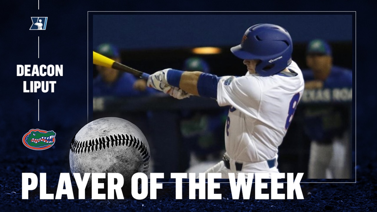 In one of the biggest weeks of his collegiate baseball career, Florida’s Deacon Liput put on a show at Tennessee and Florida Golf Coast. Finishing the week with a .450 average (9-20), the junior swatted two home runs and corralled seven RBIs. Liput had one long ball and 13 RBIs entering the week.