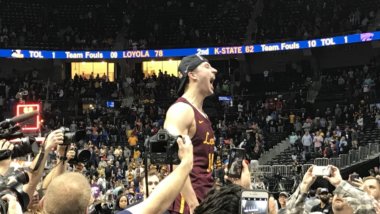 The Ramblers came out strong out of the gates, leading 12-5 at the first media timeout. Every Loyola Chicago starter had scored and three of the team’s five field goals had been assisted. Kansas State was just 2-of-7 and Loyola Chicago had grabbed all five of the Wildcats’ misses.