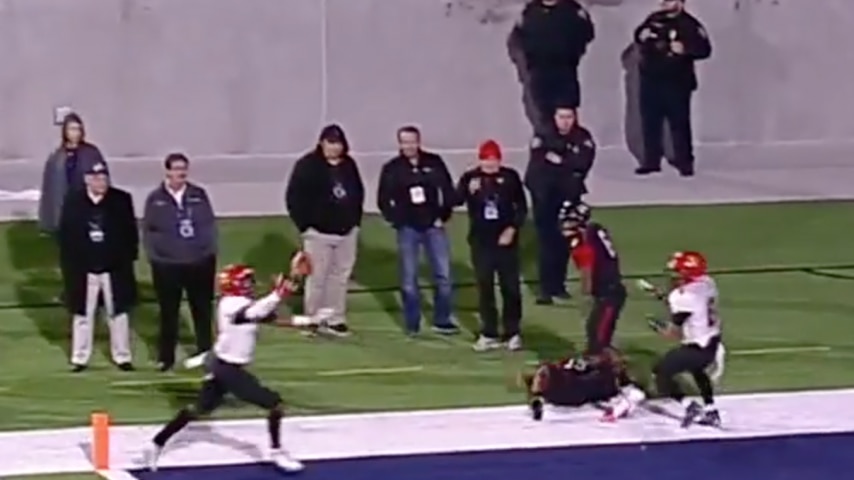 1 — Of the craziest plays you'll see in championship game history. Valdosta State's defensive back Cory Roberts lept out of bounds and attempted to tip the hopeful interception into his fellow teammate's hands. Instead, the Bulldogs' Keyondre Craig swept in and grabbed the touchdown, keeping Ferris State's championship hopes alive.